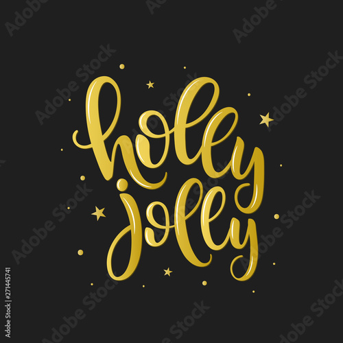 Holly Jolly script lettering on white background. Handwritten design element for card, poster, banner. Modern calligraphy. Isolated .Christmas typography print. Hand drawn vector clipart..