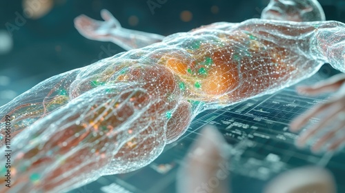 holographic, body, highlighted, organ, datum, d, model, medicals, chart, diagnostic, advanced, technology, orange, green, human, anatomy, health care, digital, health, visualisation, futuristic, ai, disease, mapping, imaging, innovation, precision, medicine, virtual, model, science, research, tech, glowing, hologram, analysis, modern, organ, scan, age, artificial, intelligence, future