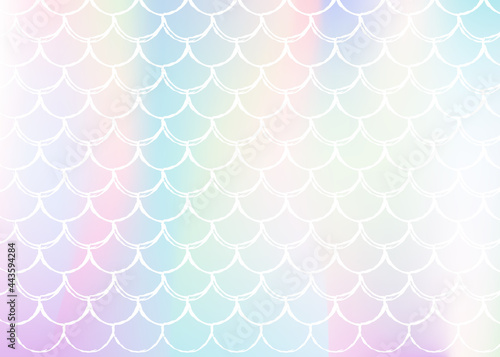 Holographic mermaid background with gradient scales.