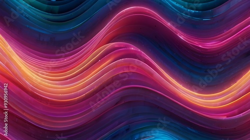 Holographic neon curved wave in motion. Pink wallpaper background. Holographic gradient Generative AI