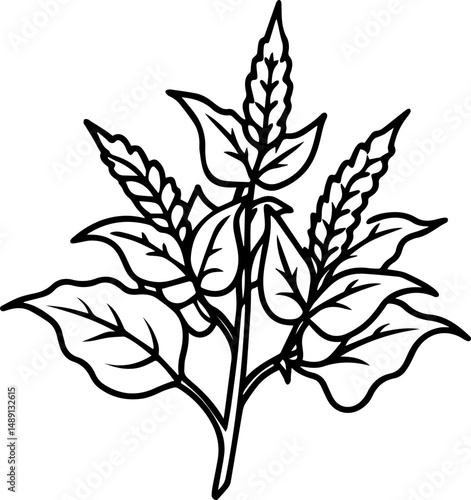 holy, basil, curry, leaf, vector, outline, illustration, green, plant, nature, tree branch, black-and-white, isolated, tree, spring, foliage, flower, fresh, macro, natural, summer, flora, object, botany, herb, beauty, growth, floral, decoration, art, texture, vintage, ornament, autumn, essential oil, aromatherapy, ayurveda, ayurvedic, cosmetic, herbal, logotype, food, cartoon, white, health, medicine, germ bud, springtime
