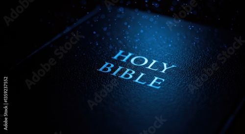 Holy Bible glows with mystical light, macro photo. For Bible study, religious education, projects related to Christianity