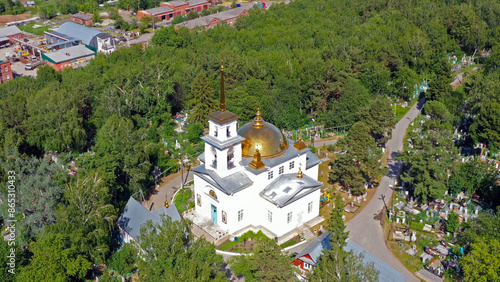 Holy Trinity Church is an Orthodox church in the city of Irbit. View from above.