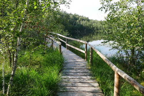 Holzsteg im Müritz-Nationalpark an der Müritz in Mecklenburg-Vorpommern
