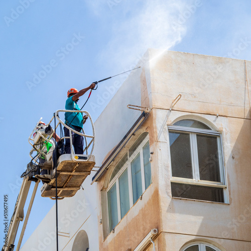 cleaning, water, powder, pretending, crane, high, danger, work, risk, scaffold, man, structure, men at work, building, work, industry, security, farming, heaven, job, constructor, person, staircase, roof, house, steel, industrialist, people, blue, water
