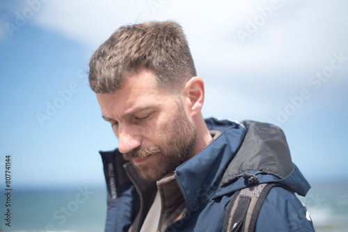 man, look, below, sea, shelter, smile, guy, face, person, people, fine-looking, children, outdoors, beach, hair, jobbing, summer, businesslike, outside, 1, businessman, head, nature, looking, closeup, smiling, model