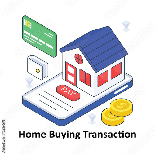Home Buying Transaction isometric Colored illustration. EPS File stock illustration
