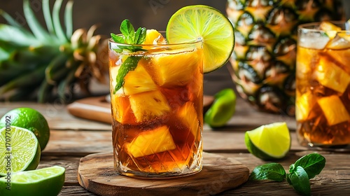 drink, tea, glasses, ice, lemon, beverage, cold, cocktail, mint, fruit, iced, refreshment, fresh, summer, isolated, alcohol, orange, lime, juice, food, liquid, slice, iced tea, cool, citrous