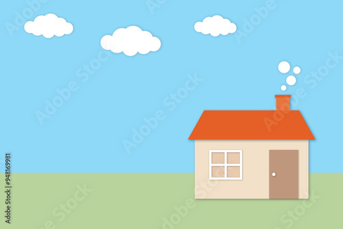 Home or house with blue sky and clouds on pastel background. Concept for residence or housing, real estate mortgage and family. copy space for the text. illustration of paper cut design style.