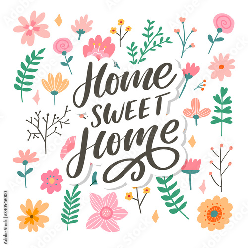 'home sweet home' hand lettering, quarantine pandemic letter text words calligraphy vector illustration slogan