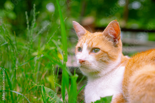 abandon, adult, animal, beautiful, brown, cat, closeup, cute, dirty, domestic, felino, fur, grass, green, homeless, nature, outdoors, pet, portrait, pretty, stray, summer, walk, wild