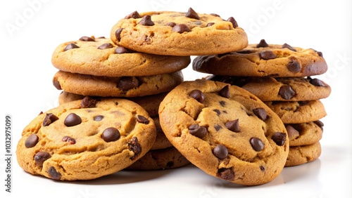 Homemade Chocolate Chip Cookies Stacked Isolated on Transparent Background for Baking and Dessert Use, High Depth of Field, PNG Format, Delicious Treat, Sweet Desserts, Snack Ideas