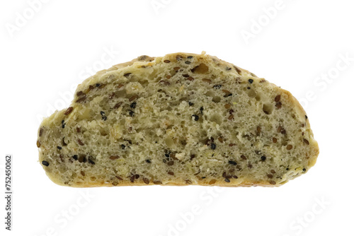 Homemade delicious bakery bread slice isolated background. Macro closeup.