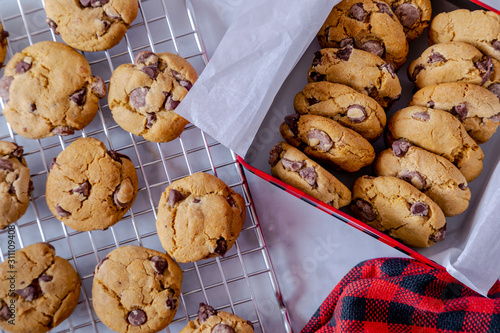 up high, baked, baking, biscuit, brown, chocolate chips, confection, confectionery, cookie, dark chocolate, delicious, dessert, food, from above, gift, gift box, holiday, homemade, milk chocolate, snack, sugar, sweet, treat