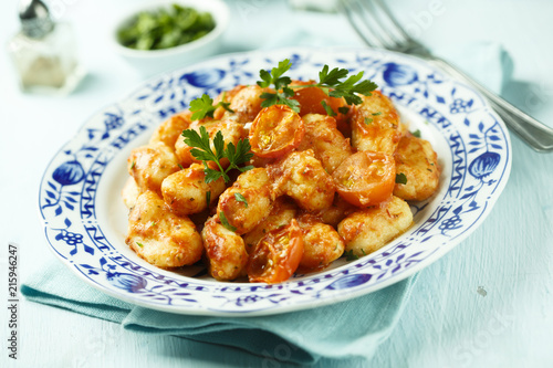 gnocchi, tomatoes, sauce, potato, italian, pasta, food, cookery, homemade, basil, cheese, cooking, prepared, view, background, white, top, parmesan, traditional, meal, epicure, dinner, vegetarian, fresh, healthy, delicious, nourishment, plate, dish, cooked, dumpling, wooden, noodle, onion, tasty, vegetable, lunch, italy, herb, mediterranean, rustic, fork, edible, herb, nature, table, green, parsley, garlic