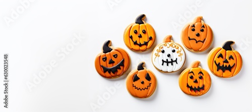 Homemade Halloween cookies on a white background, top view. With Generative AI technology