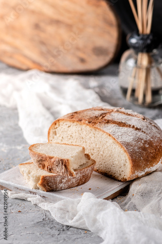 Homemade sourdough bread on rustic background