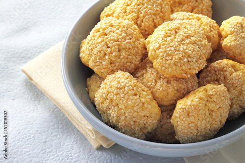 sweet, cookie, biscuit, sesame, seed, homemade, dessert, food, baked, bakery, cookery, gold, tasty, crunchy, crispy, culinary, eat, blue, plate, napkin, colours, flour, pastry