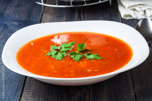 food, background, basil, bowl, cream, cookery, delicious, dinner, dish, fresh, gazpacho, green, healthy, herb, homemade, hot, lunch, meal, plate, red, rustic, soup, spoon, tasty, tomatoes, top, traditional, vegan, vegetable, vegetarian, view, white, wooden