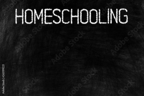 Homeschooling in Chalk Writing on the Top of Old Grunge Chalkboard Background, Suitable for Education Concept.
