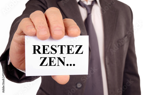 Homme tenant une carte avec écrit dessus restez zen