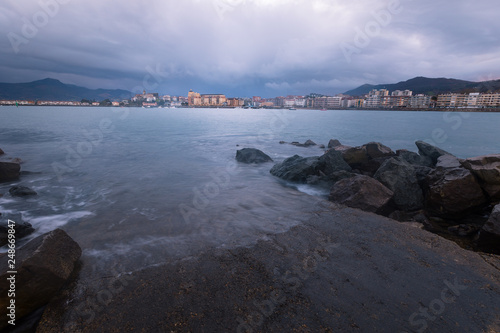 Hondarribia town at the east basque coast on the Txingudi bat with the Bidasoa river next to Irun and Hendaia, Basque Country.