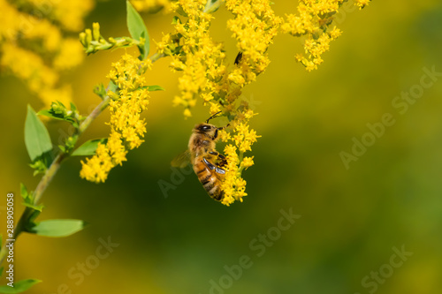 Honeybee on Goldenrod Flowers in Summer
