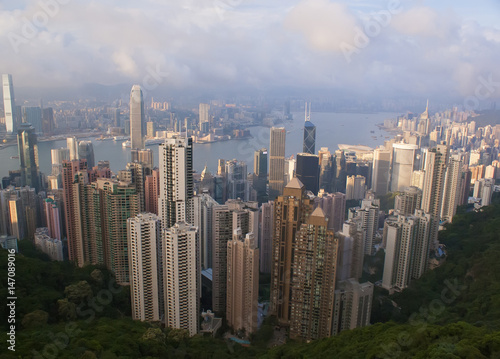 Hong Kong. The view from Victoria peak. Modern industrial city. The centre of Asia.