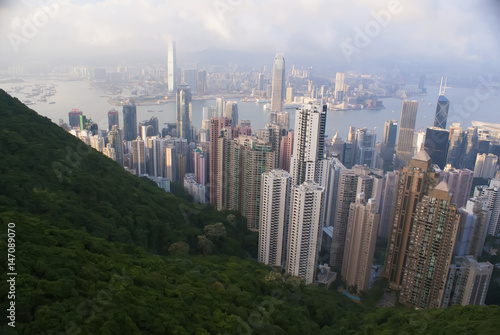 Hong Kong. The view from Victoria peak. Modern industrial city. The centre of Asia.