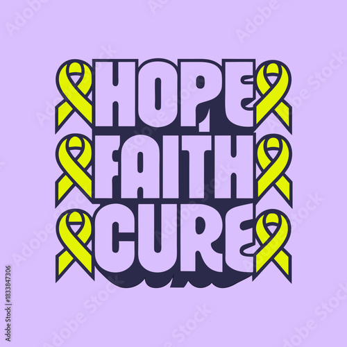 Hope Faith Cure text with yellow awareness ribbons on lavender