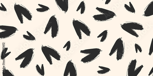 Horizontal beige background with black grungy paint brush strokes, ink. Banner template for advertising, postcards, invitations, discounts, sales. Trendy Hand drawn ornament. Abstract fabric nude