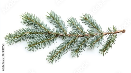 Horizontal Christmas tree branch blue spruce isolated on white background