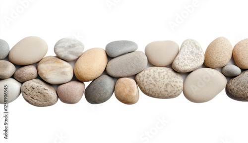stone, pebble, rock, natural, texture, pattern, border, horizontal, arrangement, white, background, grey, brown, beige, colours, variety, smooth, rounded, decorative, design element, graphic, element, nature, garden, river, beach, landscape, decoration, interior design, photographic, image, composition, still life, isolated, topview, closeup, minimalist, simple, abstract, geometric, background image, seamless