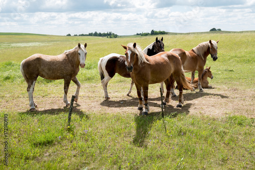 animal, day, farm, grass, group, horse, horse, meadow, field, mammal, pasture, ranch, rural, animal, brown, mane, fast horse, equine, thoroughbred, outdoors, tail, wild, summer, farm animal, grazing, graze, sky, equestrian, farming, countryside, landscape, cloud, agriculture, horizon, scenery, environment, cattle, outside, riding, scenic, cloud, lawn, farmland, sport, freedom, natural, field, cloudy
