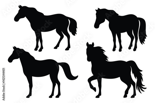 Horse animal silhouettes set Vector illustration on white background