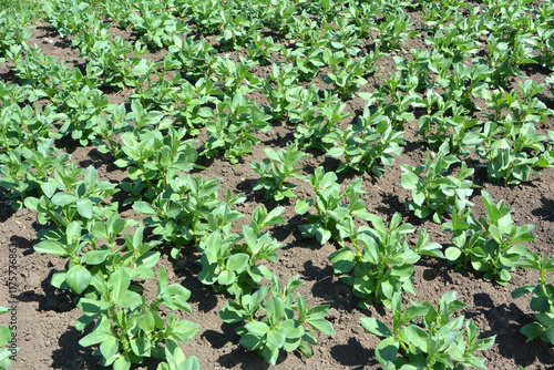 Horse bean (Vicia faba) grows in the soil