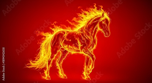 horse in fire : Fiery Abstract Running Horse Illustration on a Red Background