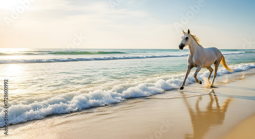 horse, beach, sunset, ocean, wave, nature, freedom, animal, coastline, water, sea, equine, wild horse, peaceful, running, sand, horizon, coastal, majestic, landscape, sunset beach, equestrian, wild animal, seacoast, natural beauty, ocean view