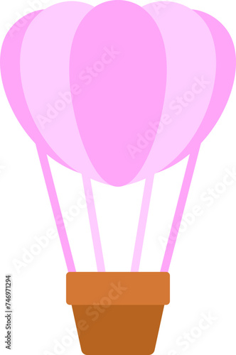 Hot air balloon icon in pink and brown color.
