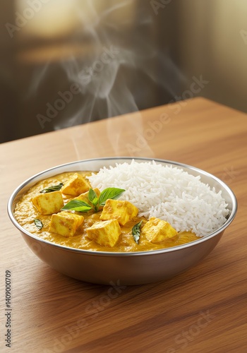 butter, masala, curry, rice, indian, food, dish, meal, cookery, basmati, lunch, dinner, bowl, asian, vegetarian, spicey, fresh, healthy, tasty, delicious, eatery, table, wooden, serving, traditional, plate, cooked, hot, steam, aroma, favor, ingredient, culinary, gastronomy, basil, yellow, white, closeup, nobody, indoor, studio, photo, balanced, diet