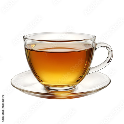 Hot beverage tea in a clear glass cup isolated on white, perfect for healthy drink campaigns.