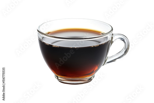 Hot brew dark as night a cup of relaxation Rich aroma clear glass The perfect morning ritual on transparent background
