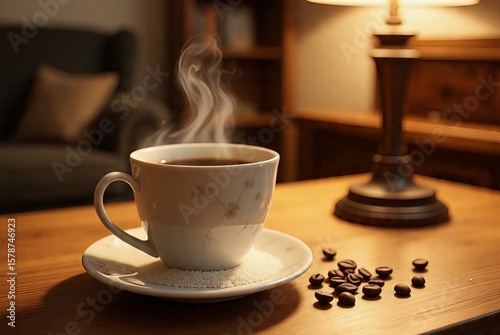 Hot Coffee on a Wooden Table in Cozy Setting