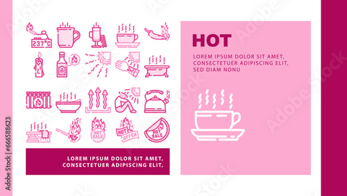 hot heat cold fire landing web page vector. flame air, warm summer, sign spicy, cool water, snowflake label, temperature hot heat cold fire Illustration