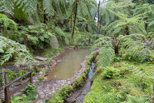 Hot spring Caldeira Velha on the São Miguel island of the Azores in Portugal.