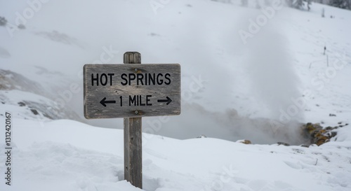 Hot Springs Sign in Snowy Landscape Guiding Towards Winter Destination