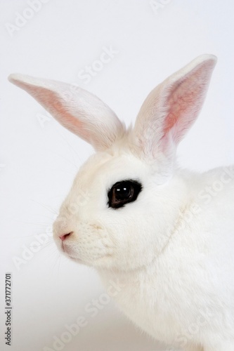 adult, agriculture, animal, animal head, domestic animals, ear, farm, farming, indoor, indoor, mammal, one animal, photo, portrait, rabbit, studio shot, white background