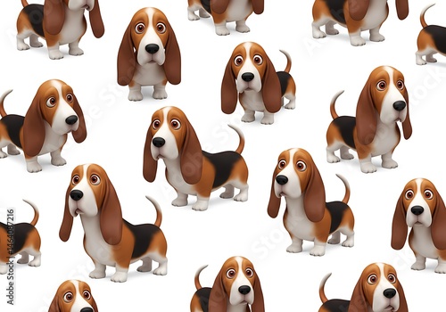dog, basset, hound, canino, puppy, mammal, animal, pet, pattern, repeat, background, texture, illustration, graphic, image, design, digital, art, cartoon, cute, adorable, sweet, friendly, playful, happy, brown, white, ear