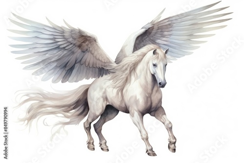 angel, animal, art, background, bird, cartoon, creativity, domestic animals, drawing, feather, flying, full-length, horse, illustrated, illustration, isolated, farm animal, mammal, mane, nature, one animal, half face, vignetting, fast horse, watercolor, white, wing