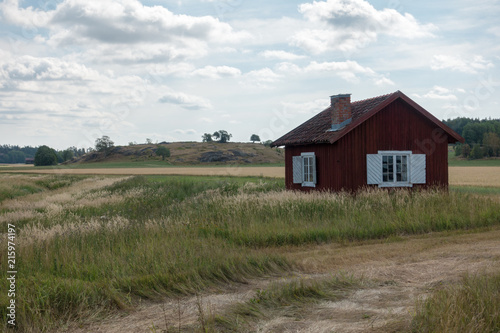 house, sky, landscape, home, grass, field, farm, green, building, nature, rural, blue, countryside, country, bungalow, old, cloud, architecture, summer, hut, abandoned, cloud, wooden, village, meadow, sweden